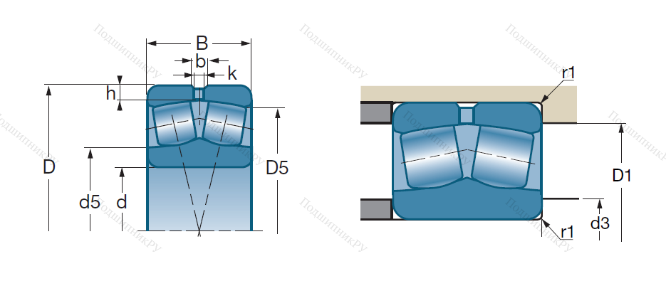 - двухрядный подшипник воспринимает комбинированные нагрузки (двухсторонние осевые и радиальную).