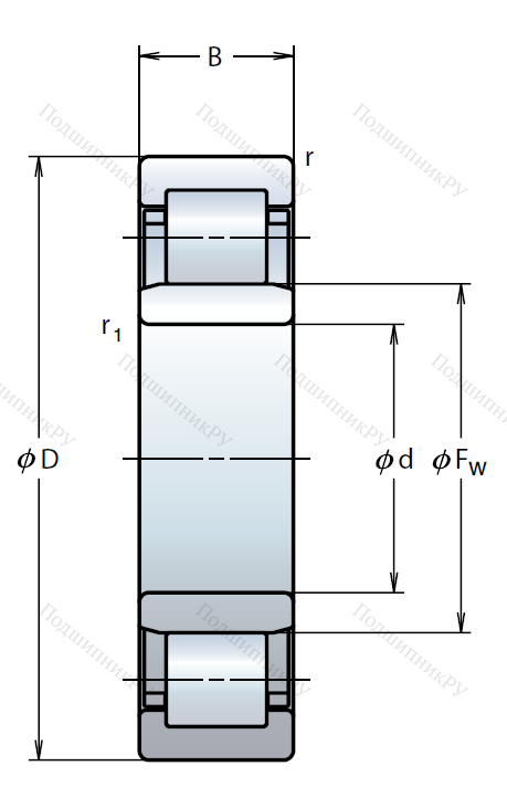 Роликовый цилиндрический подшипник NU 212 ET C3, это разновидность однорядного роликоподшипника в метрическом исполнении.