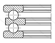 Подшипник упорный шариковый двойной 38228 в конструкцию которого входит свободная внешняя и тугая внутренняя шины (последняя жестко фиксируется на валу), сепаратор и заключенные в нем тела качения. При наличии двух рядов шарикоподшипников изделие комплектуется парой сепараторов. Может иметь подкладную обойму.