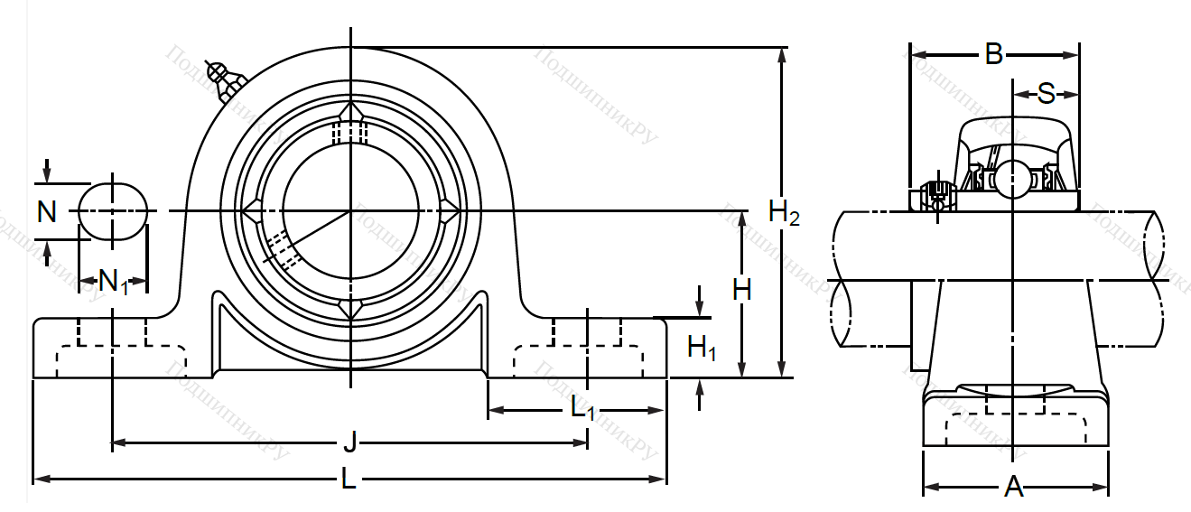 Деталь «на лапах» эксплуатируется в качестве основы для подшипника и способна компенсировать перекосы при монтаже на вал (для этого необходима установка пары такого типа устройств). Корпус конструкции отливается из серого чугуна, изготавливается из термопластика или нержавеющей стали. Присутствует наружная обойма в форме сферы.