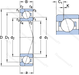 | Расчётный коэффициент (подшипники с расположением по О-образной и X-образной схемам) | X2 | 0.67 |